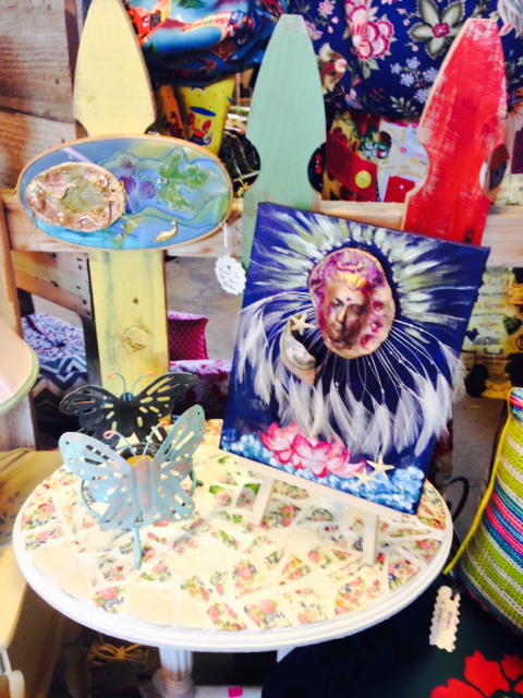 Stenciling a floor in a Mill Valley, CA home was a challenging opportunity to help recreate a unique space for the owner, who brought the New England love of a stenciled house with her to California. The kitchen floor had been previously stenciled years ago, but was now faded and worn. I was approached to do the job through Monarch, my daughter-in-law’s store in Mill Valley, where I applied decorative stenciled art to the walls when the store opened 12 years ago. The style of the stenciled art in the store compliments the Indian imports that are sold there. As in the store, the stenciling in this home compliments the gambral roofed style of this lovely early 1900’s California home.