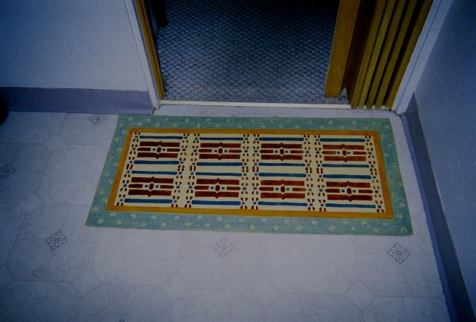 This is my Indian Basket stencil designed floorcloth that sits in my entrance hall today – stenciled and hand painted free design. One of my favorites.